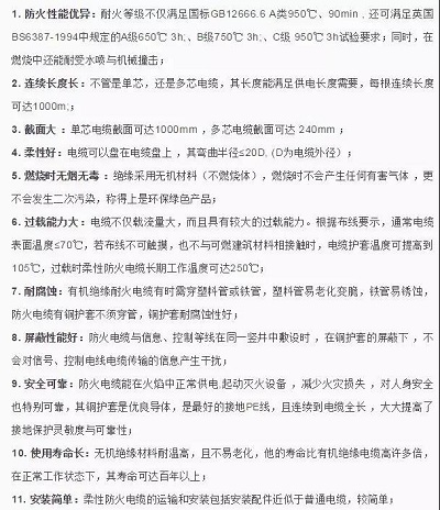 12.安装费用低:柔性防火电缆由于制作工艺先进,安装简单,在同等条件下其综合费用比矿物绝缘电缆的费用明显降低。