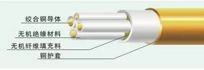 1. 导 体:多股铜线绞合;2. 绝缘层:耐高温、不燃烧的无机绝缘材料;3. 铜护套:纵包焊接并轧纹;4. 外护层:低烟无卤材料