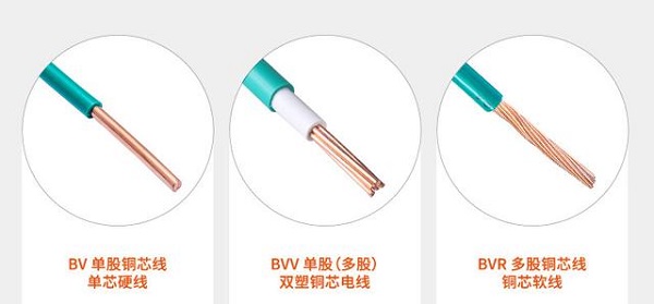 上图左一就是硬线,只有单股线,所以比较硬不容易穿管。右边两个就属软线,线芯是由多股组成。它们的优点是单股的导电稍好,导通电流稍大,散热差,施工难度大,不适合转弯多,角度大,施工难。多股的导电通流量稍差,散热稍好,施工好,适合多转弯和暗装,硬线软线各有优点。因此为方便安装我们多选择多股软线BVV或BVR。