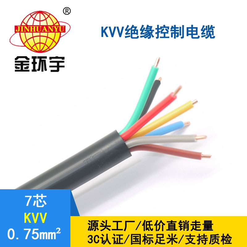 KVV7*0.75平方控制电缆是7根截面为0.75平方毫米铜芯聚氯乙烯绝缘外加聚氯乙烯护套做成的控制电缆。