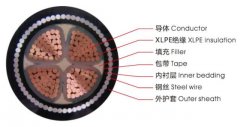 YJV33铜芯导体交联聚乙烯绝缘聚氯乙烯内护套细钢丝铠装聚乙烯外护套电力电缆, 前一个3表示细钢丝铠装,后一个3表示聚乙烯外护套,用于一般有抗拉要求的松软地基土壤直埋敷设。...