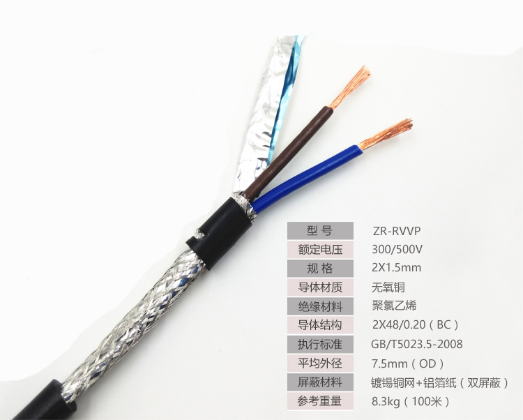 3、铜丝编织屏蔽层,抗干扰性能好。