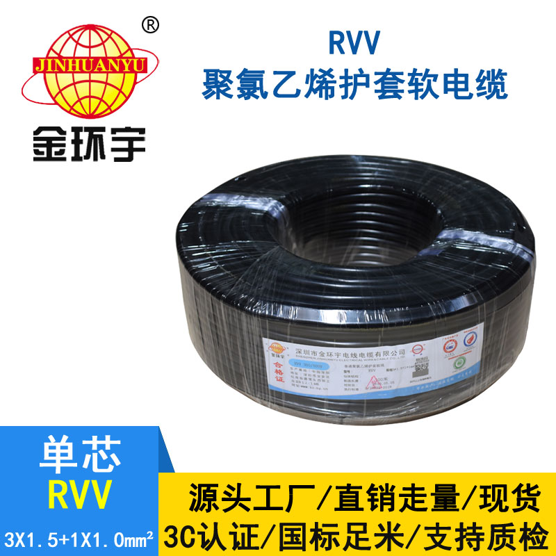 金环宇RVV3*1.5+1*1.0平方4芯电缆
